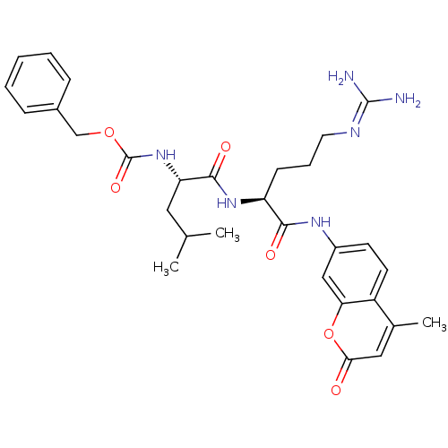 benzyloxycarbonyl-Leu-Arg-7-amino-4-methyl-coumarin | benzyl N-[(1S)-1-{[(1S)-4-carbamimidamido-1-[(4-methyl-2-oxo-2H-chromen-7-yl)carbamoyl]butyl]carbamoyl}-3-methylbutyl]carbamate | CBZ-Leu-Arg-AMC | Z-Leu-Arg-AMC