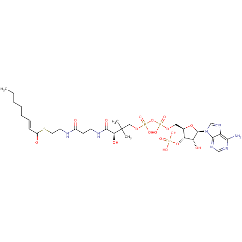 (2E)-Octenoyl-CoA | [(2R,3S,4R,5R)-5-(6-aminopurin-9-yl)-4-hydroxy-2-[[hydroxy-[hydroxy-[(3R)-3-hydroxy-2,2-dimethyl-3-[2-[2-[(E)-oct-2-enoyl]sulfanylethylcarbamoyl]ethylcarbamoyl]propoxy]phosphoryl]oxy-phosphoryl]oxymet | {[(2R,3S,4R,5R)-5-(6-amino-9H-purin-9-yl)-4-hydroxy-2-({[hydroxy({hydroxy[(3R)-3-hydroxy-2,2-dimethyl-3-{[2-({2-[(2E)-oct-2-enoylsulfanyl]ethyl}carbamoyl)ethyl]carbamoyl}propoxy]phosphoryl}oxy)phosphoryl]oxy}methyl)oxolan-3-yl]oxy}phosphonic acid | 2-trans-Octenoyl-CoA (OCoA)